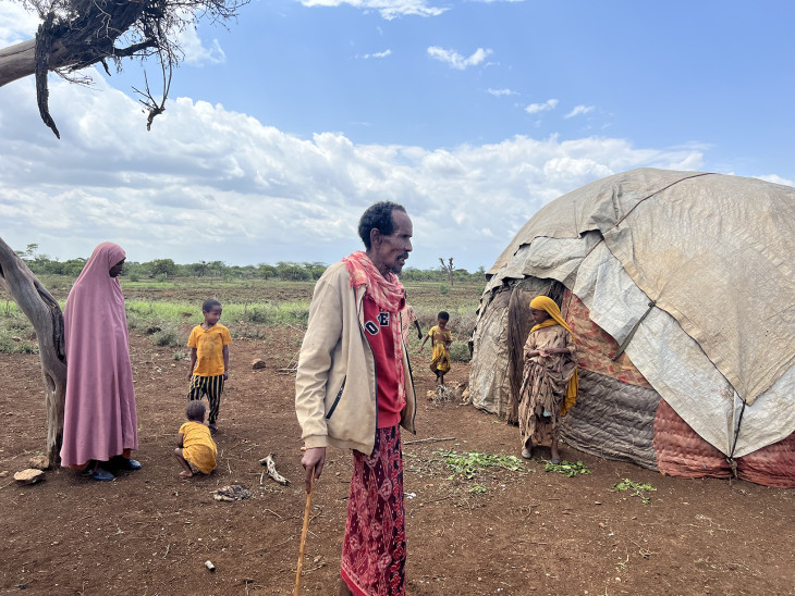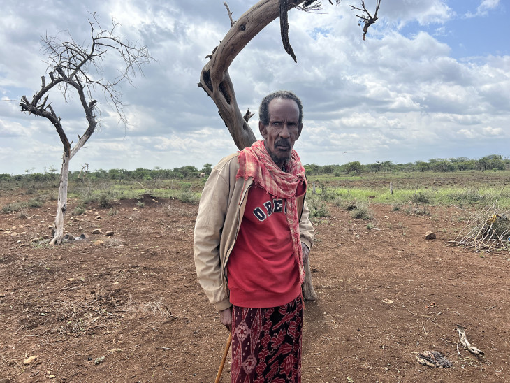 この日も、暑い一日でした。エチオピア南部オロミア州にある小さな牧歌的な町で、ベデル・アブドゥラヒは自分の小屋の周りを歩き回って、辺りを点検していました。この土地は、つい最近までまるで砂漠のようでしたが、まばらな雨が降ったことから今は、草木が茂り、緑が広がっています。65歳の牛飼いであるアブドゥラヒにとって、牧草地は、家畜と自分の家族が生き延びるために不可欠なものです。ですが、3年前まで、アブドゥラヒが飼育する牛やラクダ、ヤギ、羊の命を支えていたこの牧草地は、干ばつにより、わずか数カ月のうちにほぼ失われました。