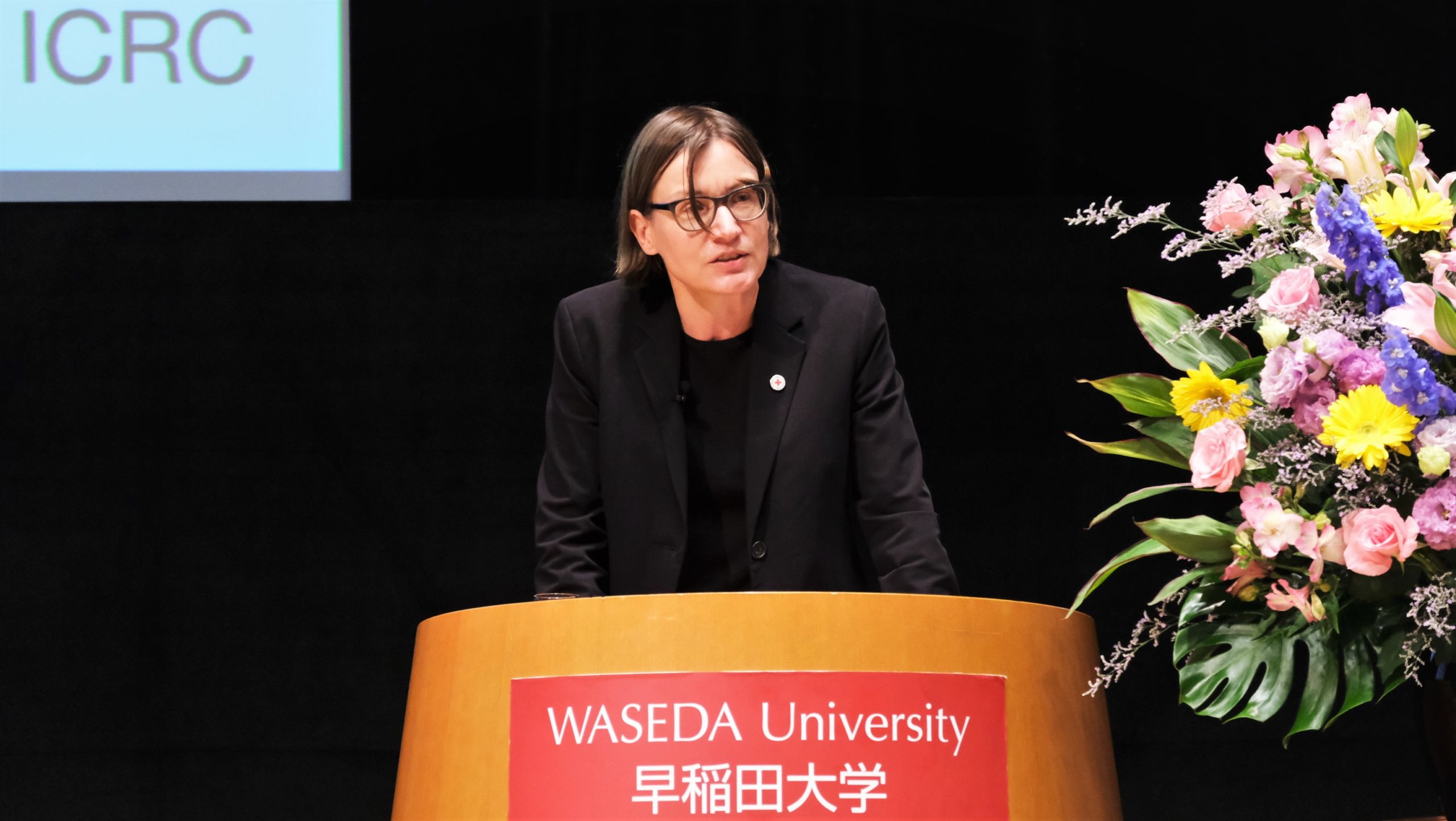早稲田大学で講演をおこなうミリアナ・スポリアリッチ総裁 ©ICRC