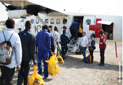 ![]() | 被拘束者11人が釈放され、ICRC手配の飛行機でジュバに移送。2018年1月28日。 |