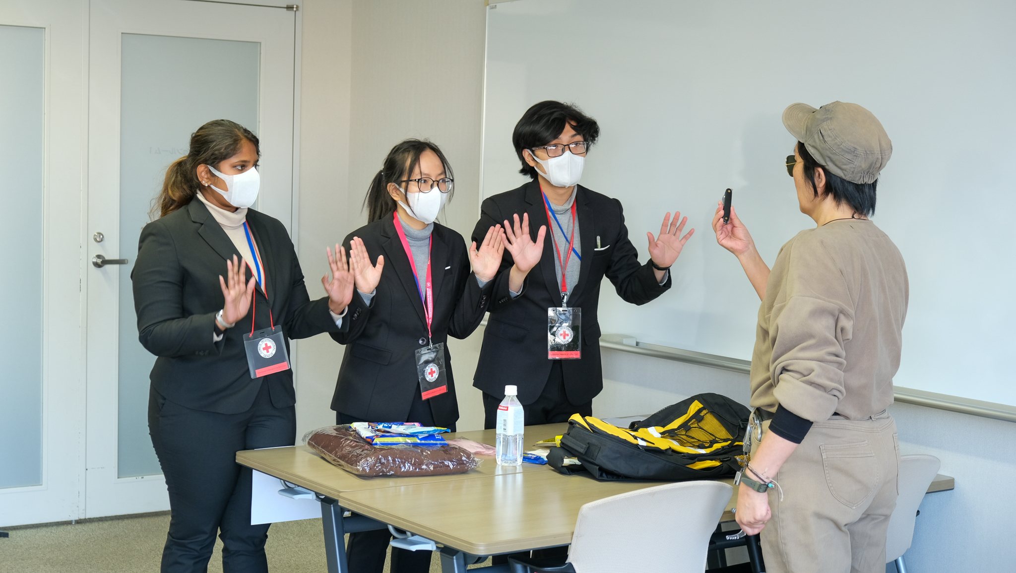 ウィー:私はスリランカ出身で、ICRCは内戦の際に人道支援を行っていたので、組織自体は知っていました。ただ、今回のロールプレイ大会を通してもっとICRCについて勉強したいと改めて思いました。以前は、ICRCは中立的な組織と聞いて、それって可能なのかとずっと疑問を抱いていましたが、ロールプレイ大会を通じて、ICRCの中立とは、人間性(ヒューマニティ)に基づくものだということが分かりました。また、食料や水といった物資配付のみならず、紛争当事者による民間人の保護や被拘束者の処遇改善などもおこなっていると初めて知りました。学びを通じて、ICRCを更に尊敬するようになりました。
