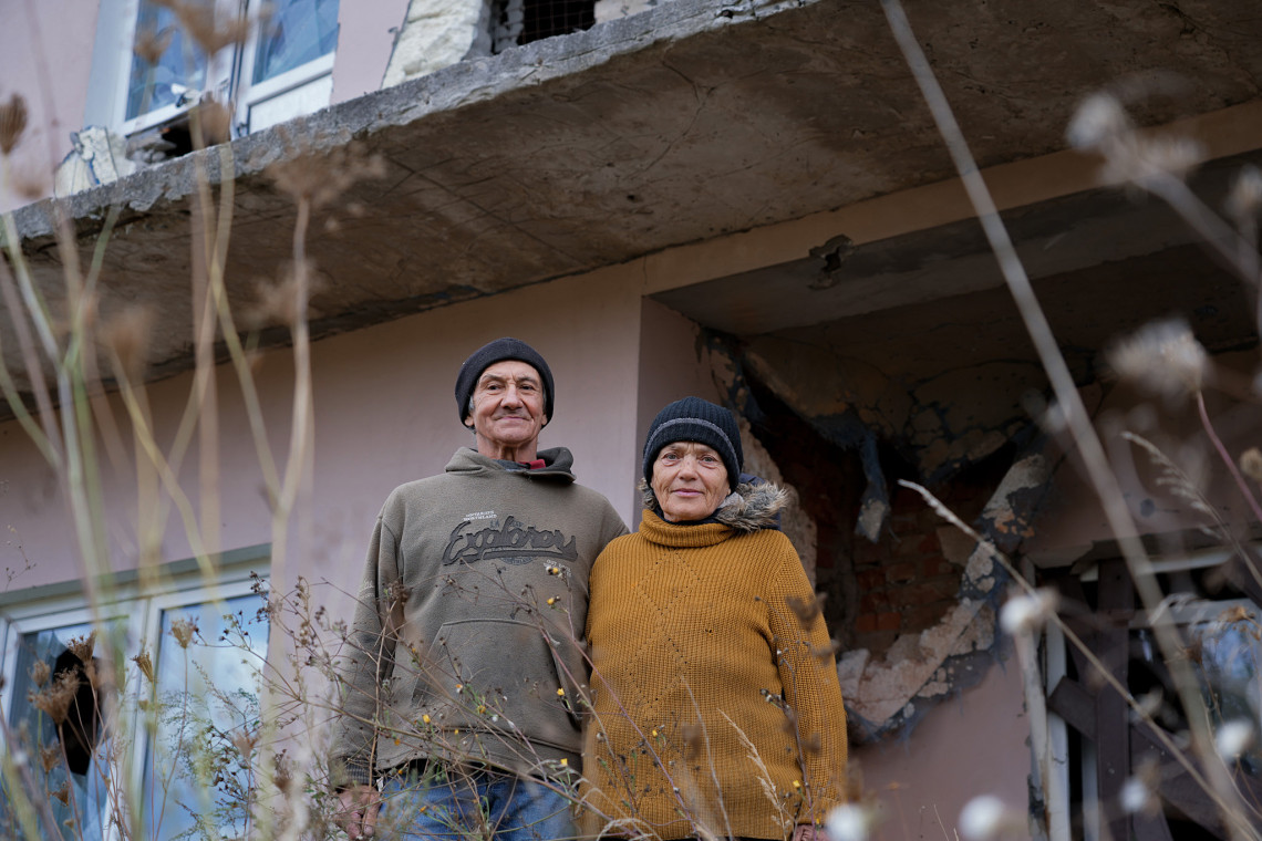 キーウに住むライサと夫のイワンは「私たちは、すべてを失いました。でも、今はただ生きているだけで幸せなんです」と語ります。ICRCは、紛争による被害を受けた人びとが家を建て替えられるよう、建設資材の提供や現金の給付をおこなっています。