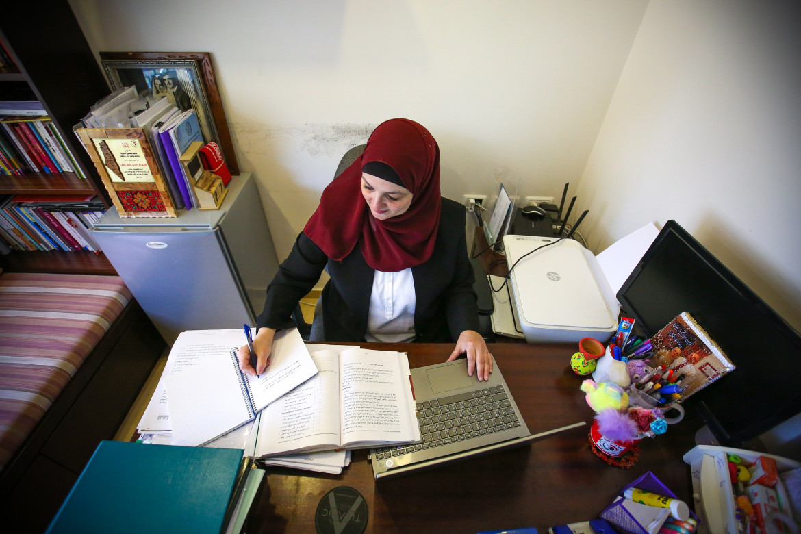 「昼間は教育アドバイザーとしてフルタイムで働き、夜は学生をしています。5人の子どもの母親でもあります。子どもたちのうち3人は障害を抱えています」と語るのは48歳のナンシー。ナンシーは、ラマッラ市内の大学の博士課程で特殊教育を学んでいます。