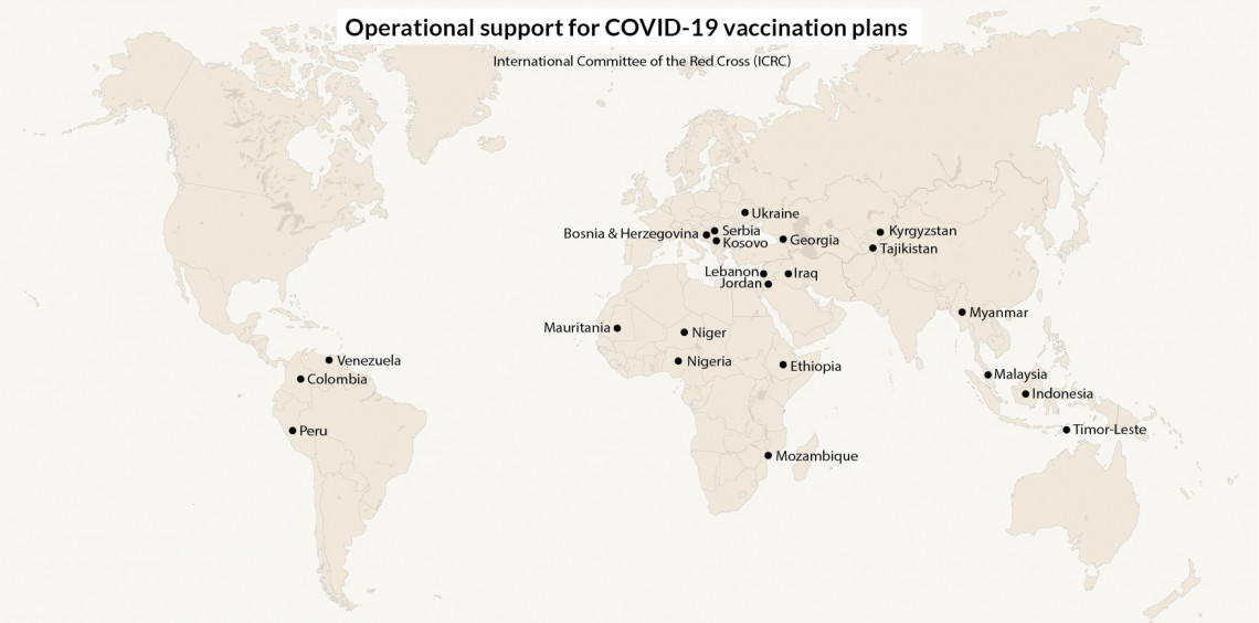ICRCが赤十字運動パートナーと連携してワクチン接種を支援している国々