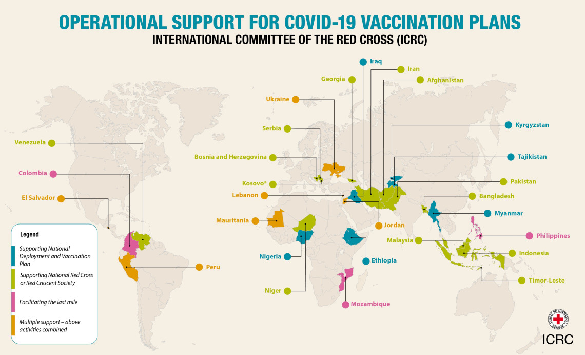 赤十字運動パートナーと連携してワクチン接種を支援している国々