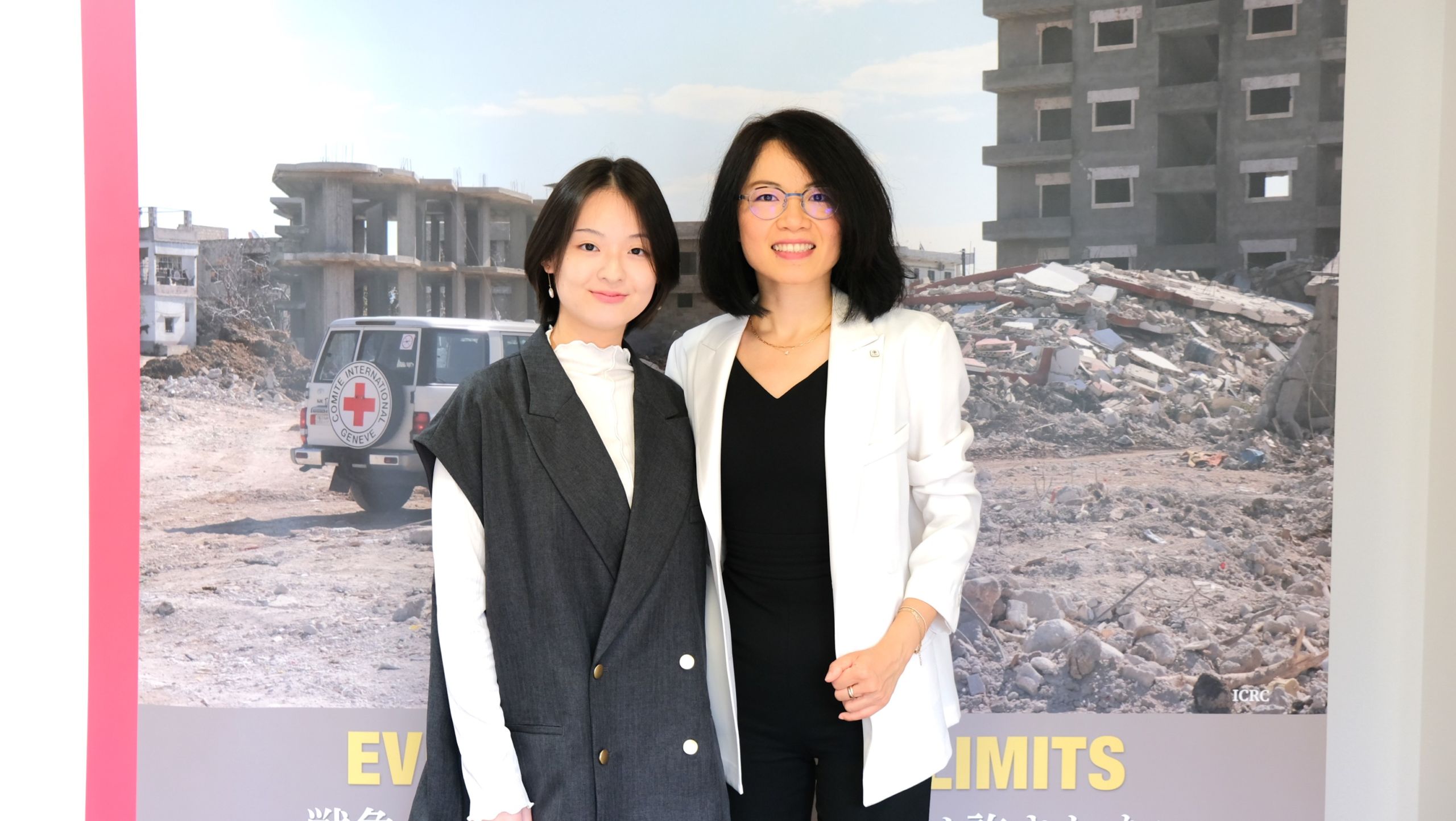 ウェン・チョウ ICRC法律顧問(右)とインタビューをおこなった広報インターンの和田さん(左) ©ICRC