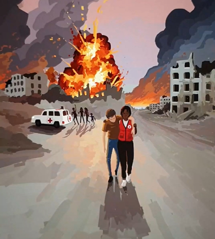 “無限ズーム”の手法を用いて、独特のデジタルアニメを手掛けるフランス人アーティスト、バスカンジー氏による作品。テーマとして取り上げた「中立性」は、戦時下において最も支援を必要としている人々に手を差し伸べるため、赤十字が大切にしている原則です。どんな組織や勢力にもくみせず、中立であることで、紛争地の命を守り、家族の絆を取り戻すことができます。誤解されがちなこの中立性について、皆さんも一緒に考えてみませんか。